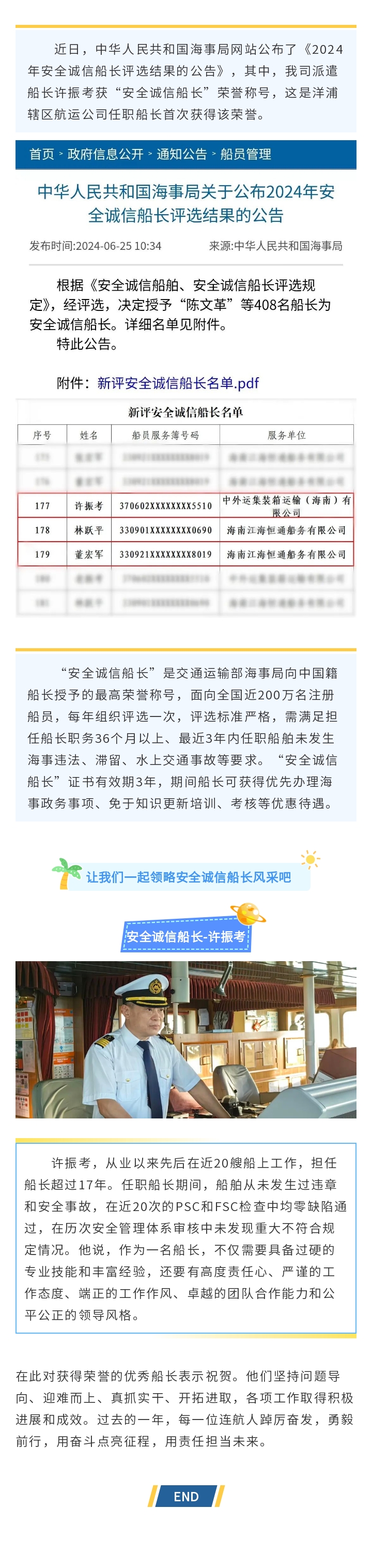 喜報(bào)!青島連航派遣船長(zhǎng)榮獲全國(guó)“安全誠(chéng)信船長(zhǎng)”稱(chēng)號(hào)